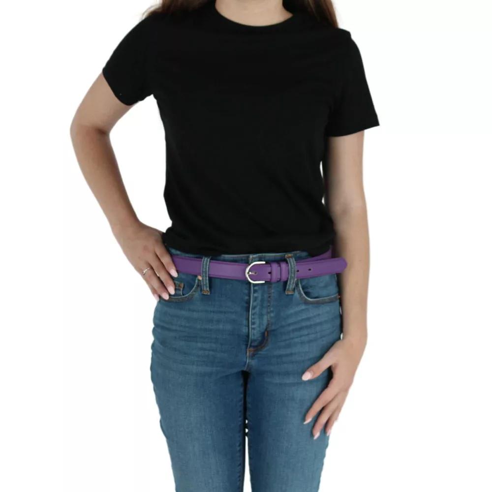 CTM Women's Leather 1 1/8 Inch Dress Belt, L, Dark Purple