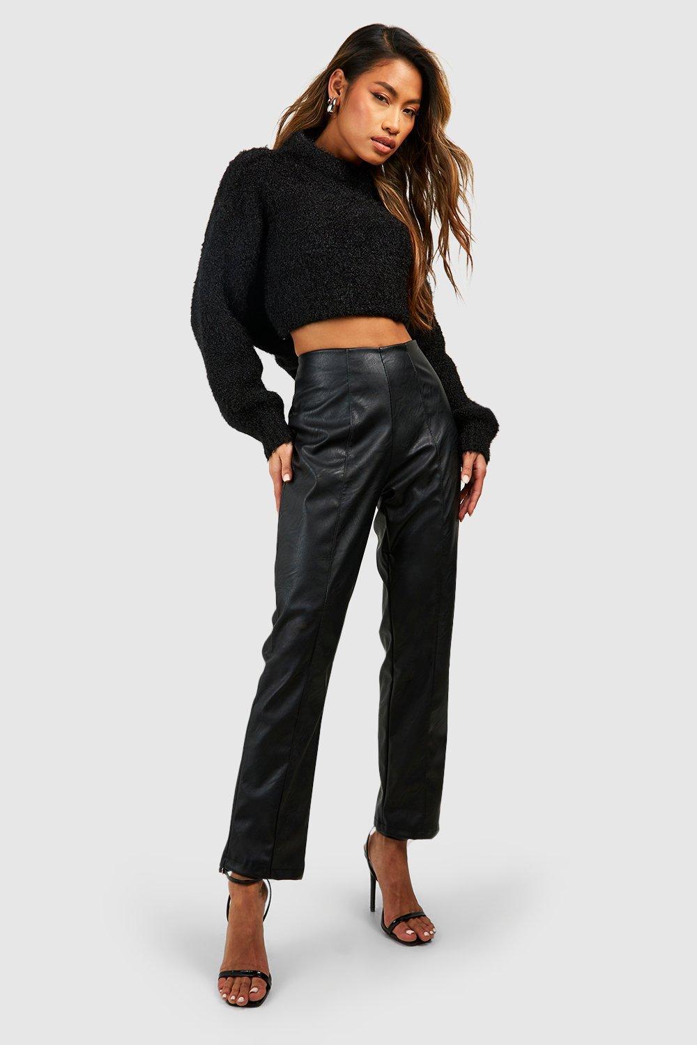 Womens Faux Leather Skinny Pants - Black - 12 - Work the punk-pop look with new faux leather pants. An animal-conscious alternative to genuine leather, these women's faux leather pants are super versatile, comfortable, and not forgetting, universally flattering. Made from a somewhat stretchy vegan leather, these leather-look pants contour the shape of your body while providing a smoothing effect thanks to the soft and supple coating of the pants.Style: Skinny Pants