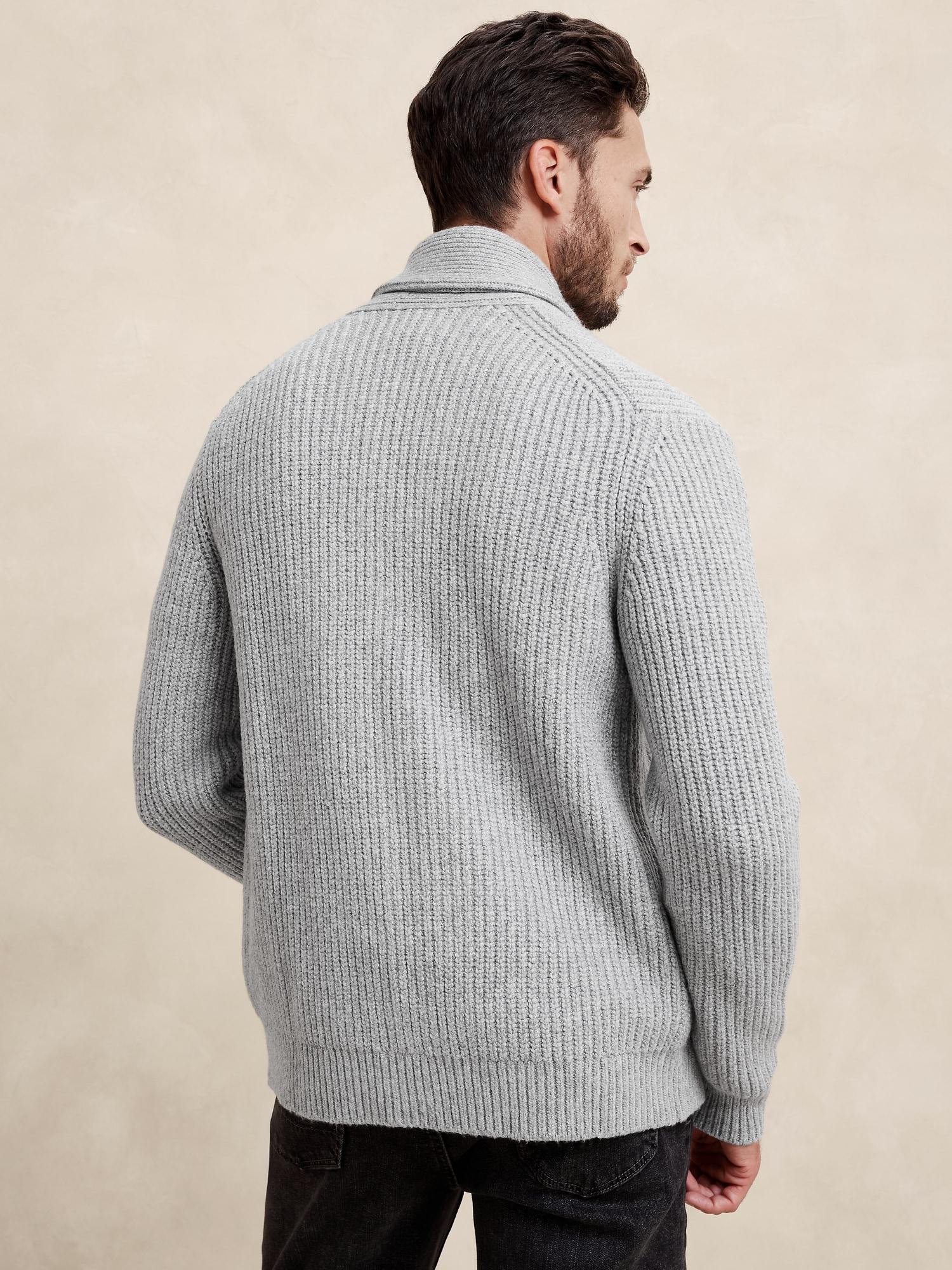 Embrace ultimate comfort with our Cozy Shawl Cardigan. Designed for unmatched coziness, this soft and warm sweater is a must-have staple for your wardrobe. Shawl collar. Long sleeves. Button front closure. Ribbed neck, arm cuffs and hem. Straight hem. Made exclusively for Banana Republic Factory. Standard fit. Model is 6'2" (188 cm) and is wearing a size M.