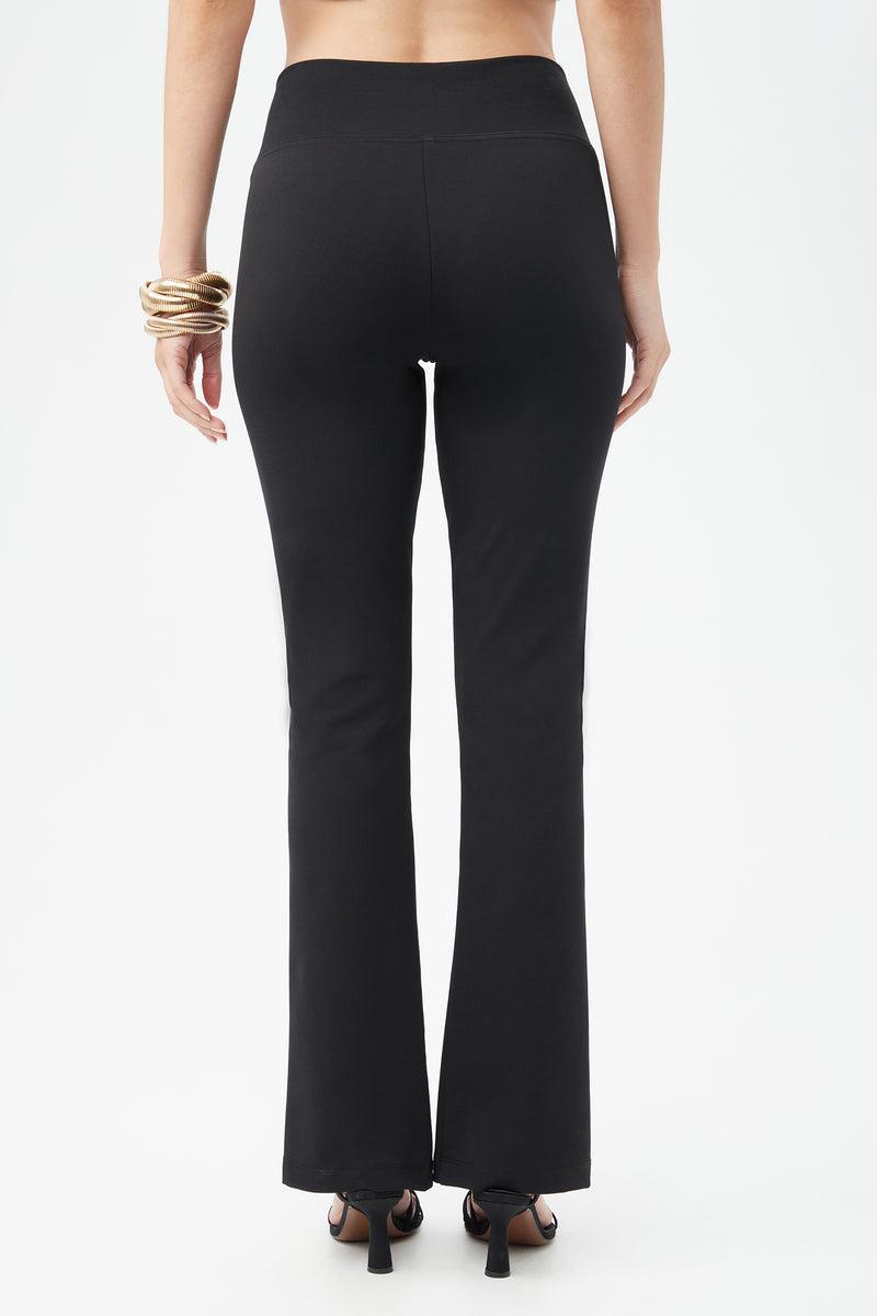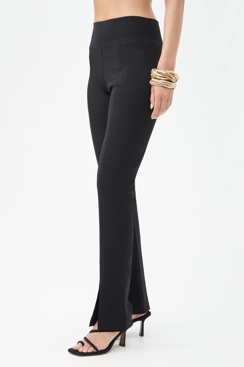 Flattering and stretchy Power Ponte gives this streamlined pant a comfortable fit that holds you in all-day long. Front slits at the hem add the finishing touches to this essential black pant, with an ankle-length hem and slight kick flare - the perfect choice for your year-round wardrobe.