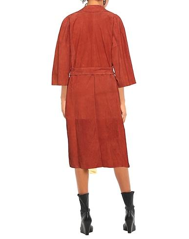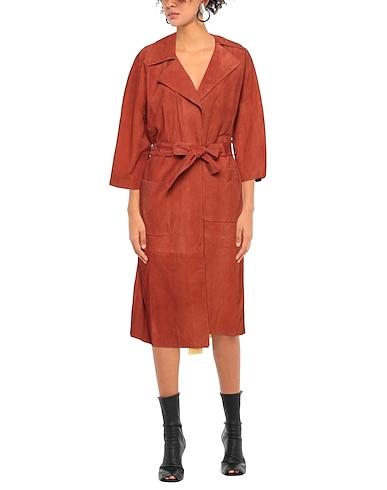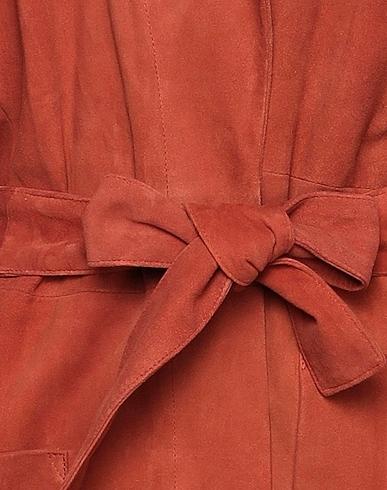 Leather. Suede effect, belt. Solid color. Lapel collar. Single-breasted. Long sleeves. Unlined. Multipockets. Contains non-textile parts of animal origin. Color: Rust. Size: S.