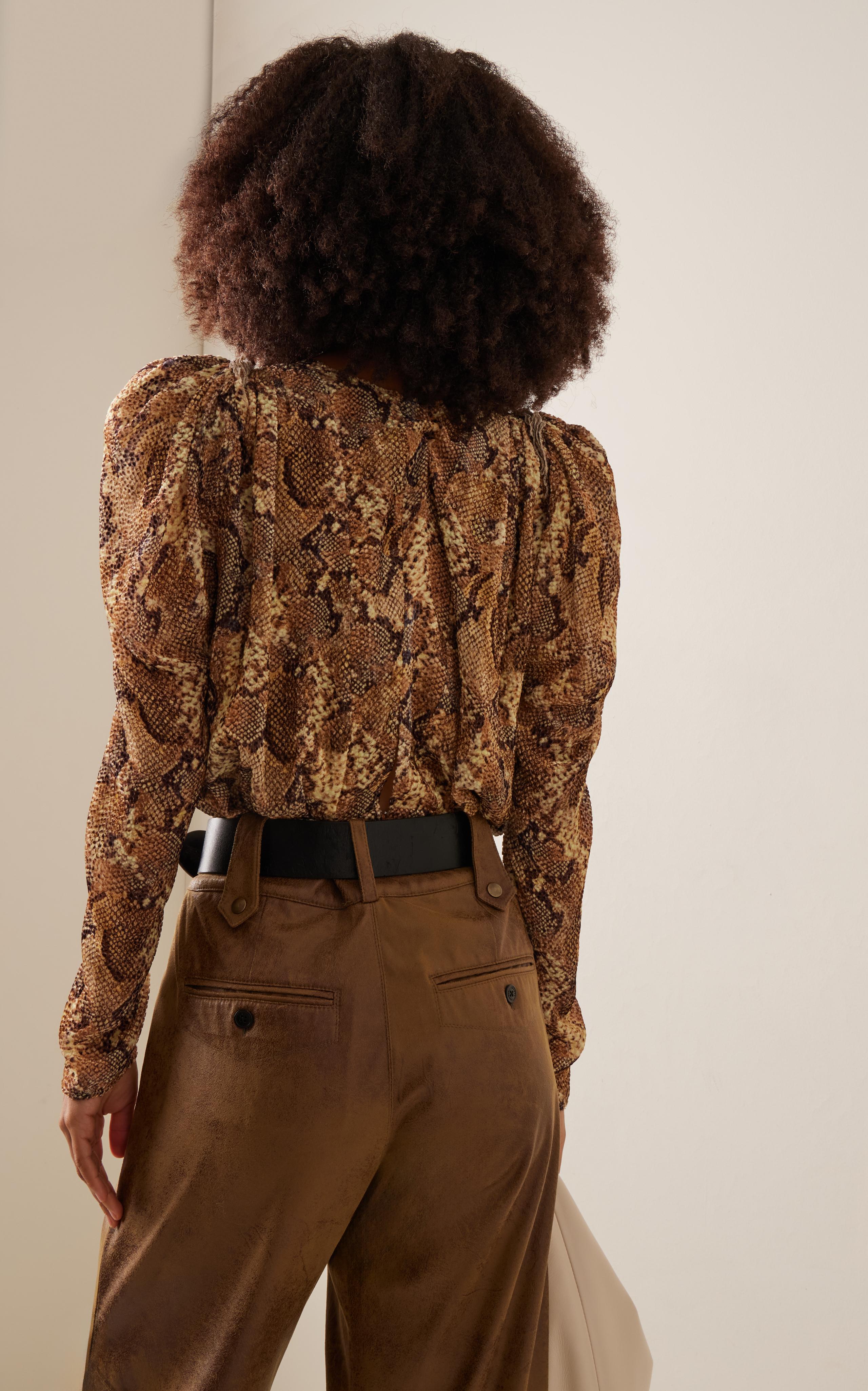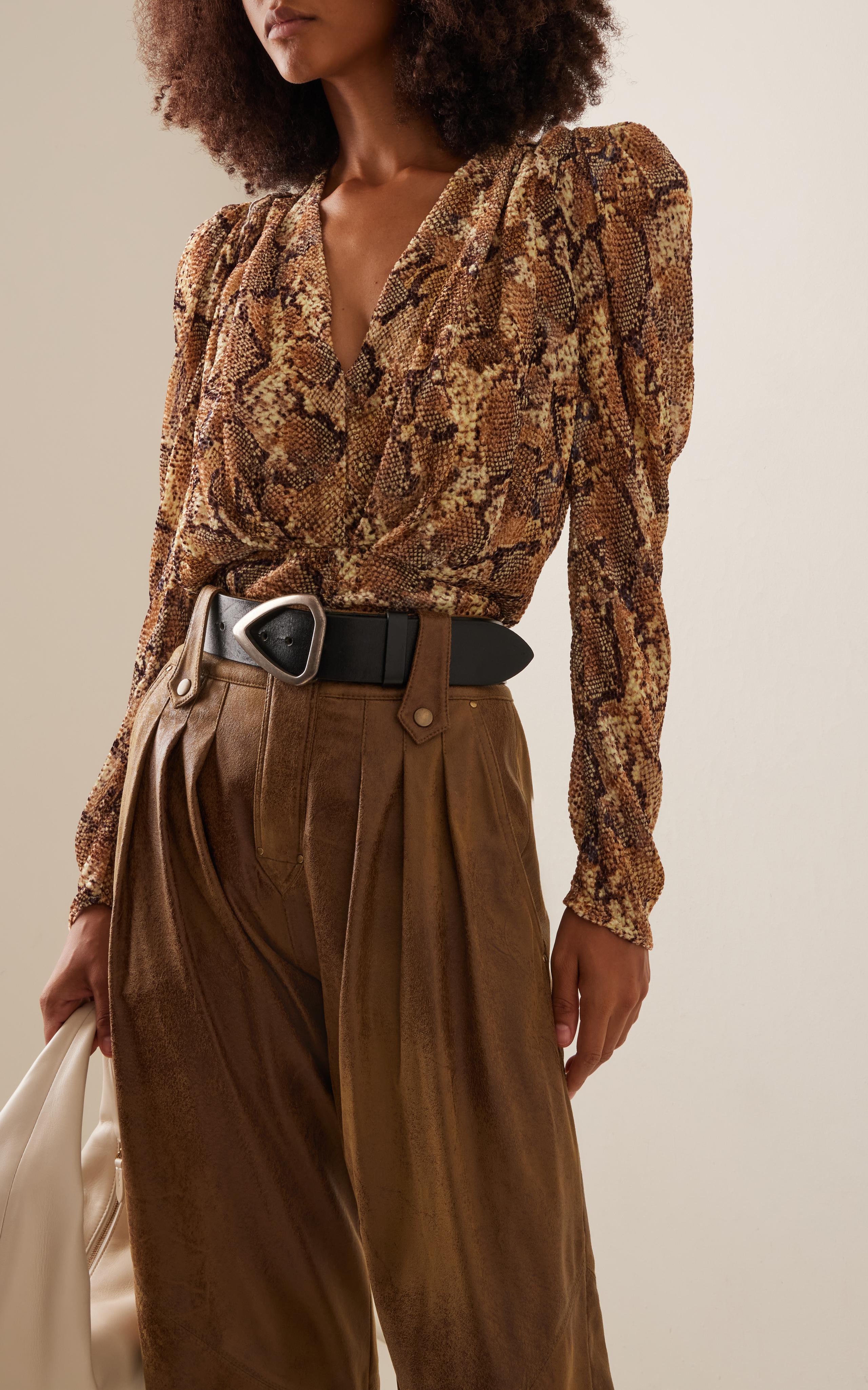 Isabel Marant presents a new uniform this season—filtered through her signature Left Bank effortlessness and bohemian seduction.The 'Marlin' blouse is crafted from a fluid silk-blend; twisted in silhouette; and printed with a snake-effect print.