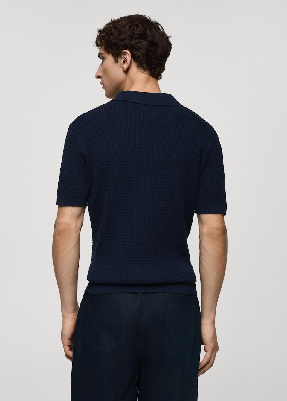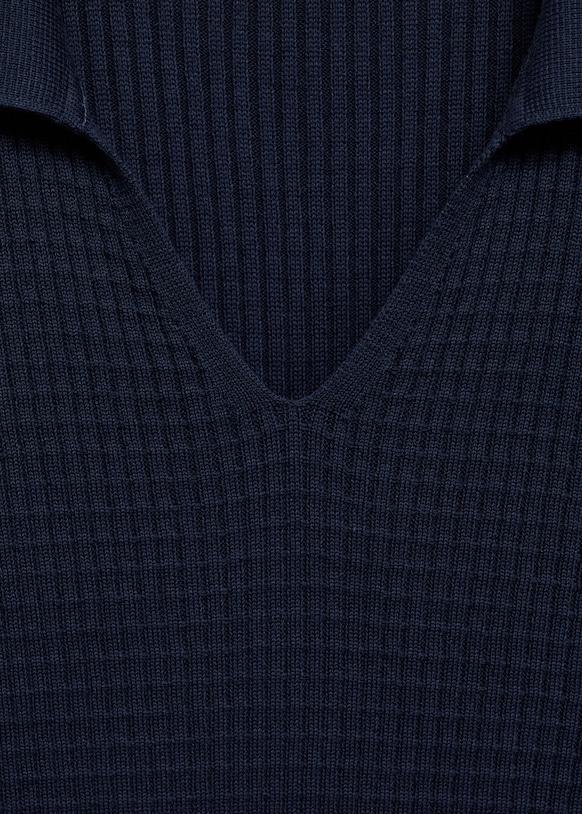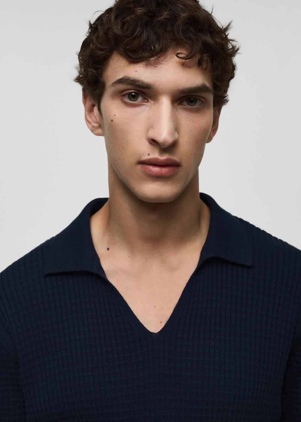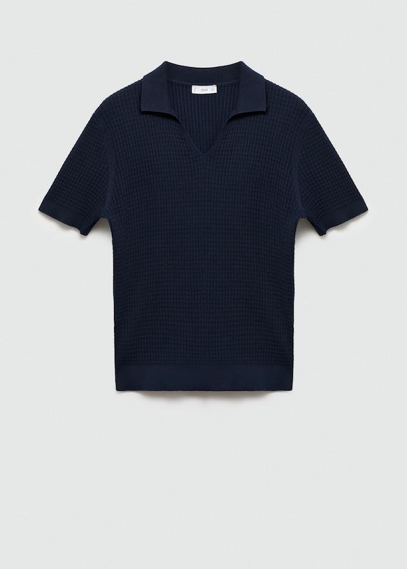Take advantage of the best discount of the year with Black Friday. Fine knit fabric. V-neck polo collar without closure. Short sleeve. Straight hem. The model is 6'1" and is wearing a size M. 100% cotton fabric.