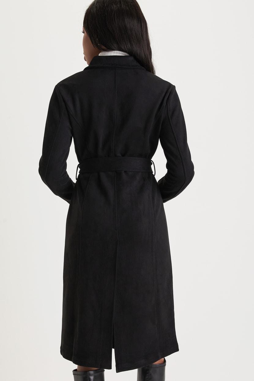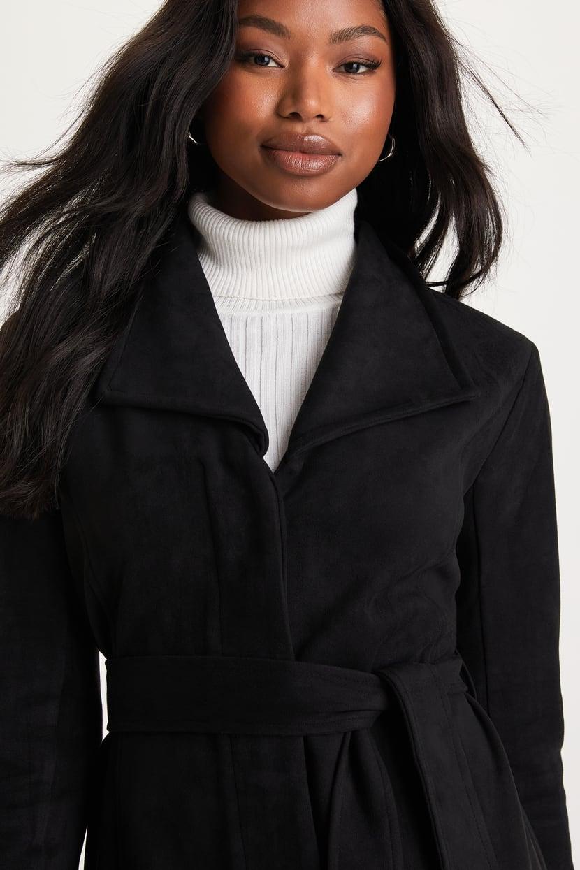 Elevated Season Black Vegan Suede Collared Trench Coat