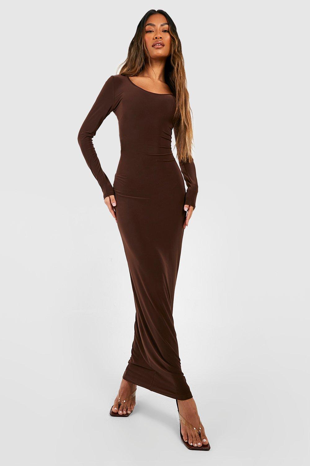 Womens Premium Heavy Weight Slinky Long Sleeve Maxi Dress