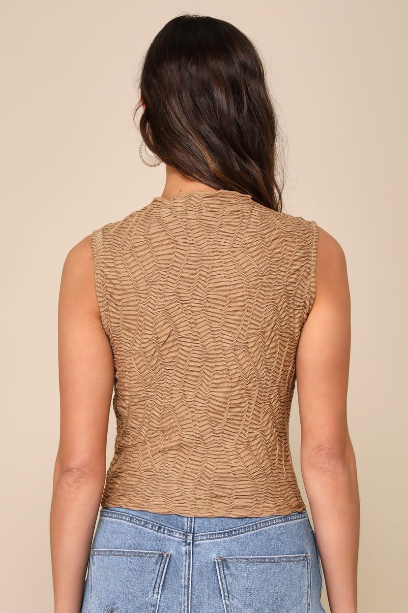 My Rules Light Brown Textured Mesh Mock Neck Tank Top