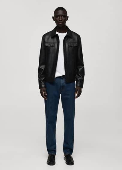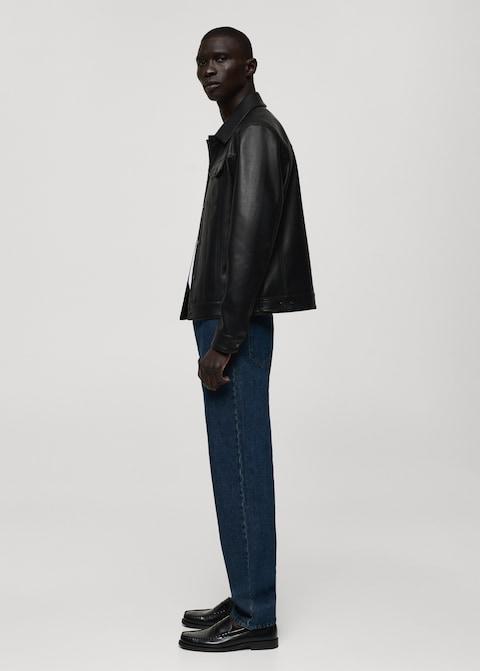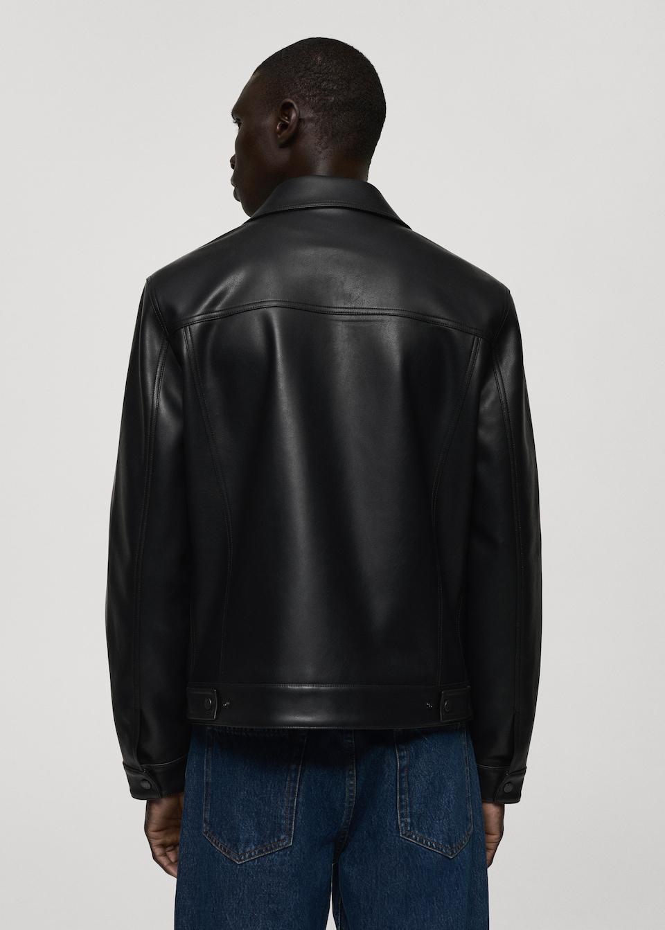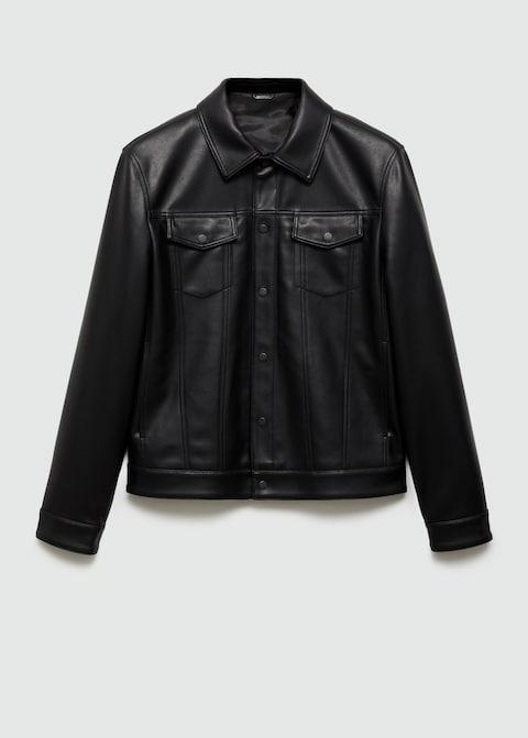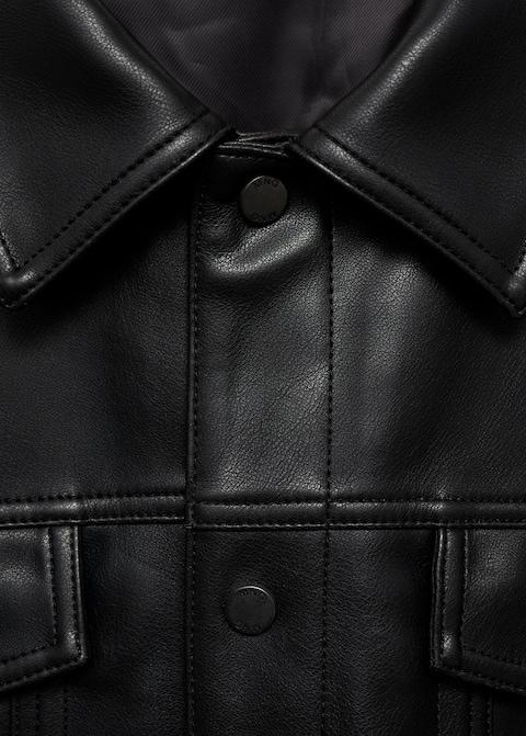 Take advantage of the best discount of the year with Black Friday, Online Exclusive, Leather-effect nappa, Short design, Shirt-style collar, Front closure with metal buttons, Two flap and patch pockets on the front, Long sleeve with buttoned cuffs, Inner lining, Straight hem, The model is 6'3" and is wearing a size M, Two welt pockets on the front, Inside welt pocket.
