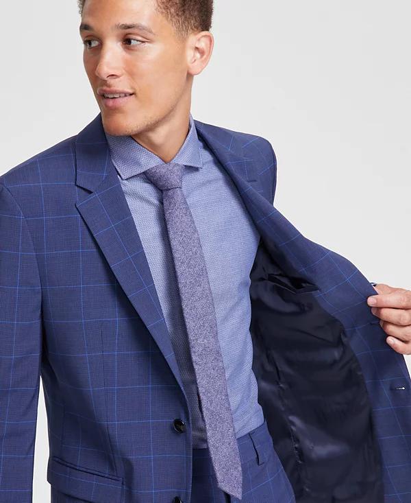 Give yourself the gift of sleek, modern elegance when you stride into your next event in this stylish suit jacket from HUGO by Hugo Boss, featuring an athletic modern fit and a polished windowpane pattern.