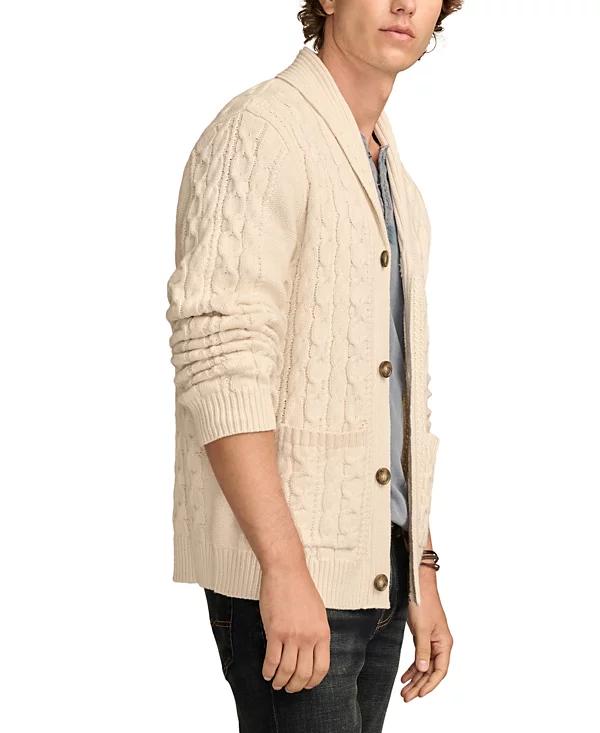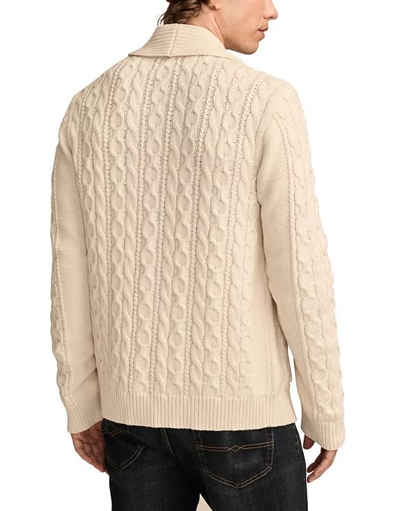 Style any cool weather 'fit with the Cable Shawl Cardigan from Lucky Brand. Made of soft cotton-knit with a hint of wool for added warmth, this cardigan features a shawl collar, classic cable-knit design and ribbed details at the trim for an elevated look and feel. Layer yours over graphic tees, long sleeve Henleys and more.